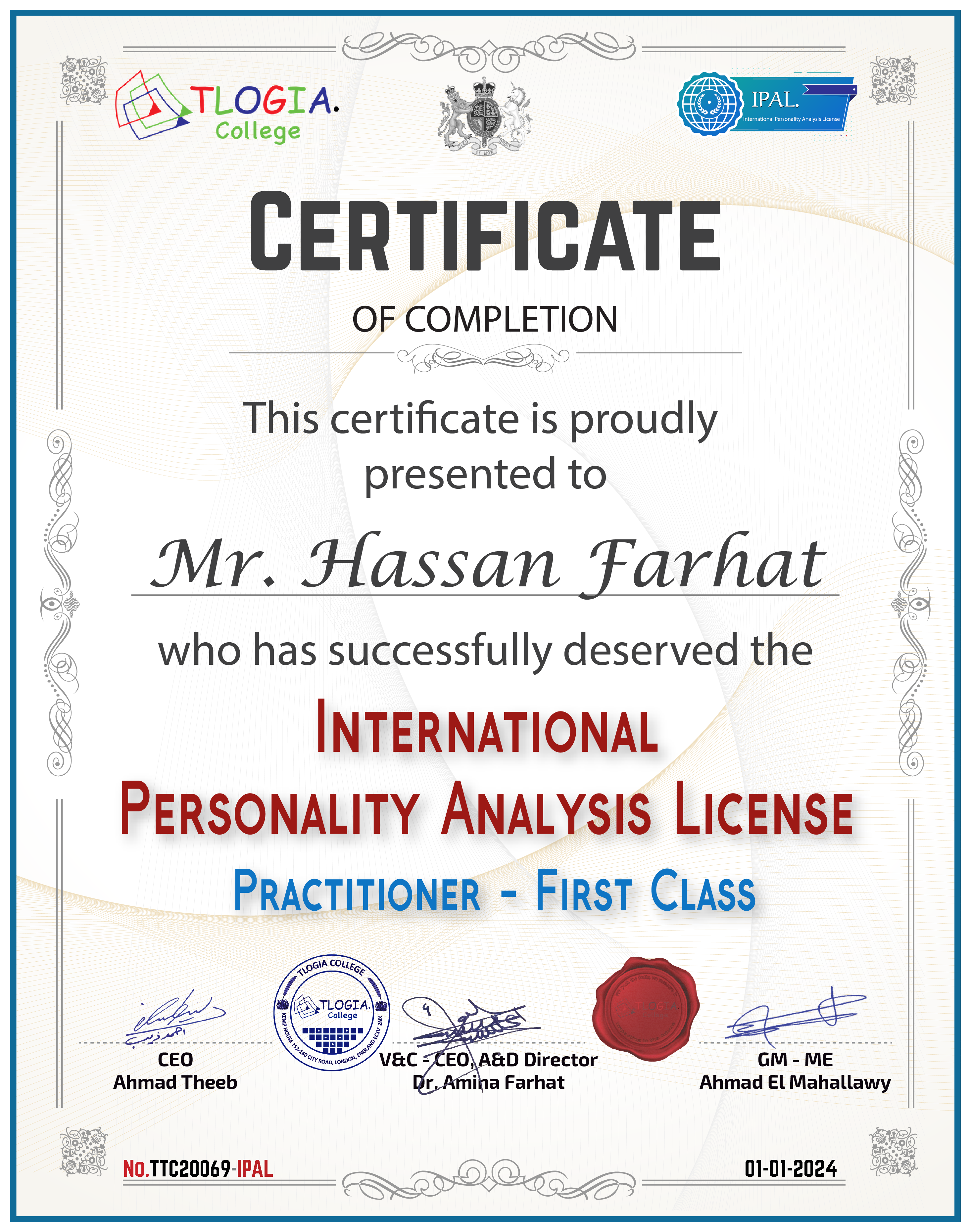 شهادة الرخصة الدولية لتحليل الشخصيات – حسن فرحات